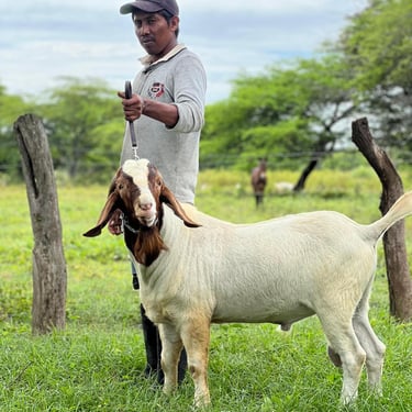 La raza Boer es referente mundial en producción de carne caprina por su rápido crecimiento, excelente conformación muscular y alta eficiencia productiva. Destaca por su rusticidad, adaptabilidad a climas exigentes y su capacidad de transmitir estas cualidades de forma consistente a su descendencia.