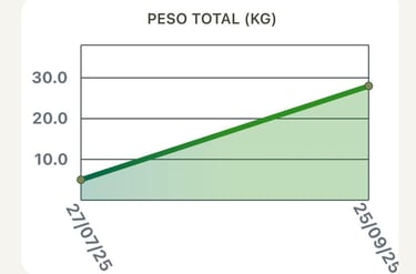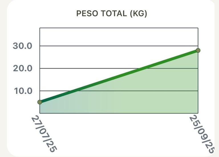 INDICADORES DE OLIVER, PESO AL NACIMIENTO 5KG, SEGUNDO CONTROL 60 DÍAS CON 28KG