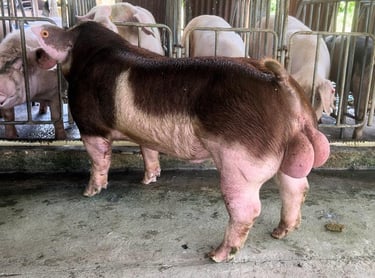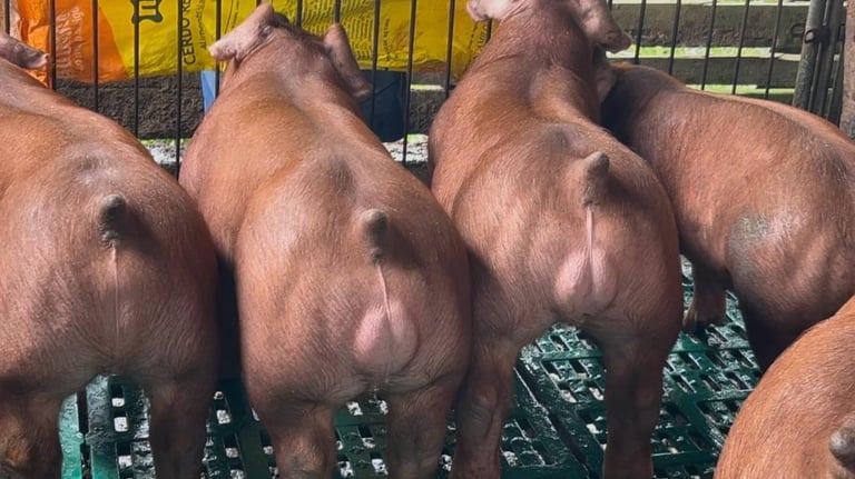 La raza Duroc es una línea paterna destacada por su excelente calidad de carne, rápido crecimiento y buena eficiencia alimenticia.
